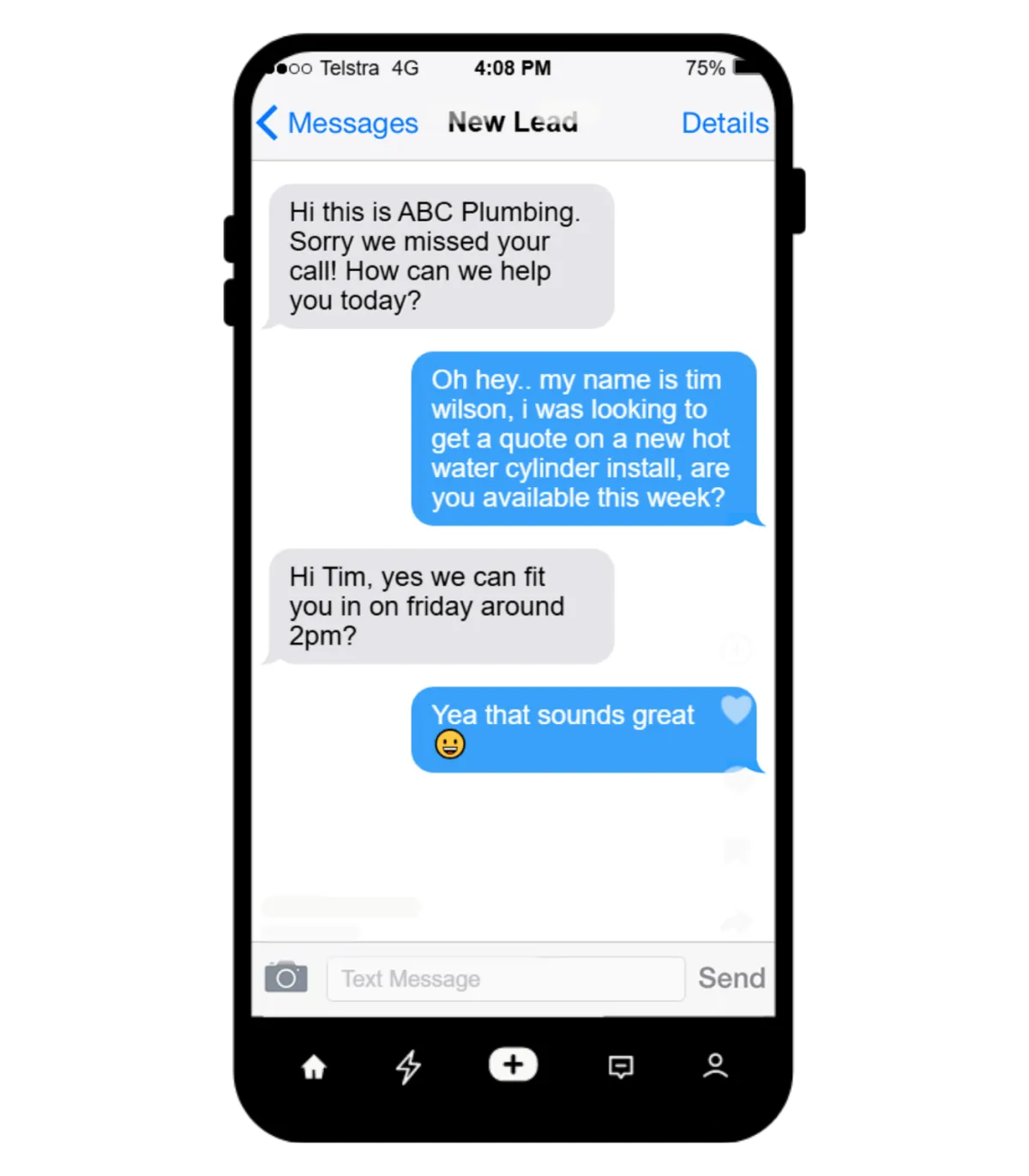 Instead of letting calls go unanswered (and customers moving on to your competitor), our smart automation captures the caller’s details, sends them an immediate response, and even adds them into your follow-up pipeline. That way, you can get back to them when you’re ready, without losing business in the meantime.